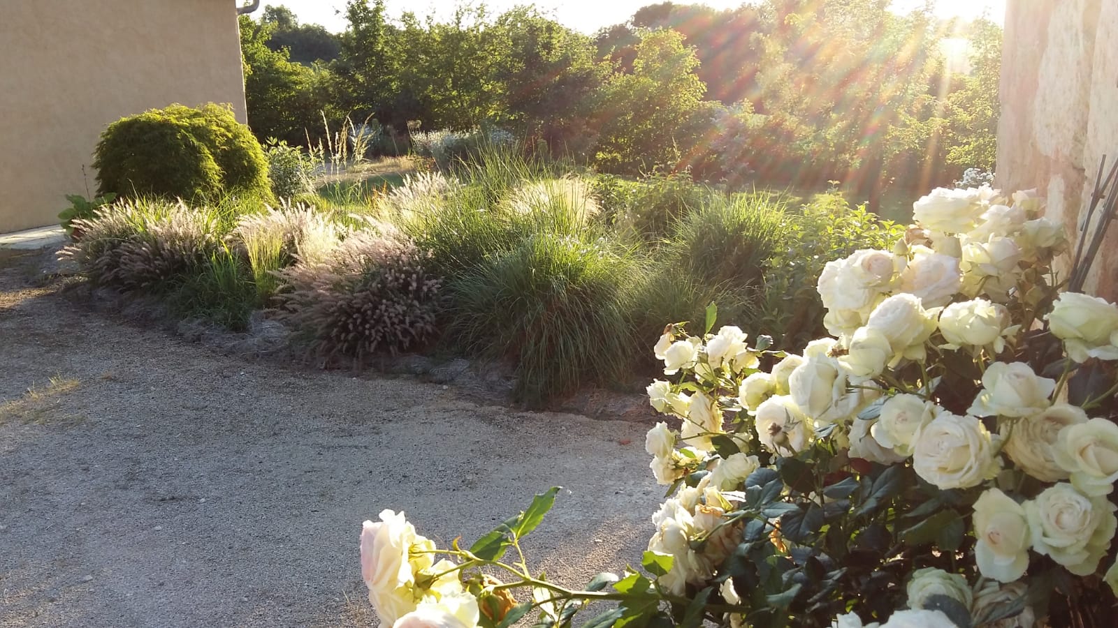 Une piscine, différents coins repos et plusieurs terrasses vous permettront de profiter du jardin fleuri.